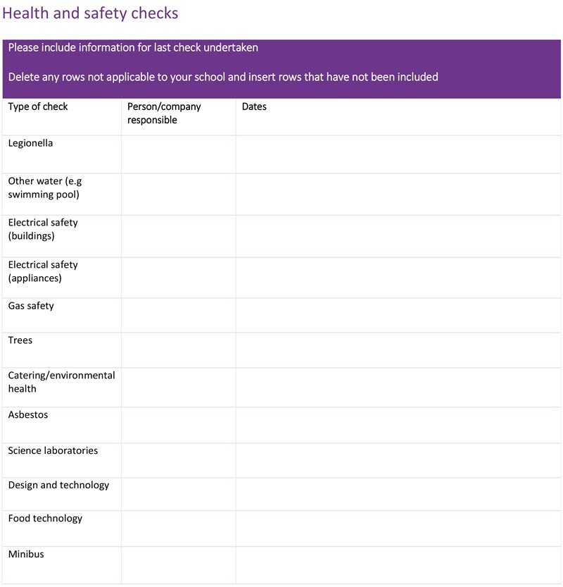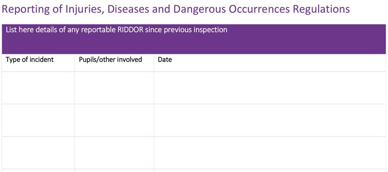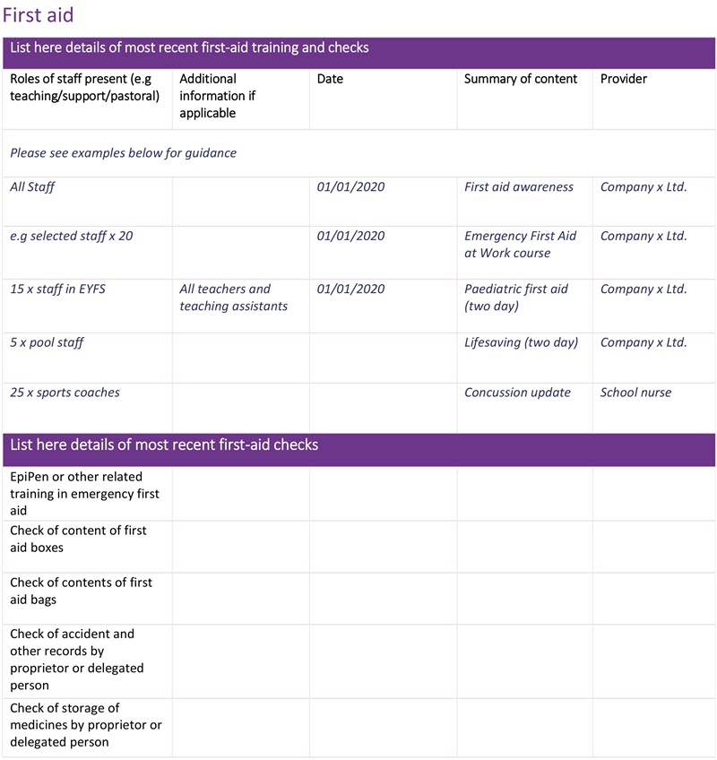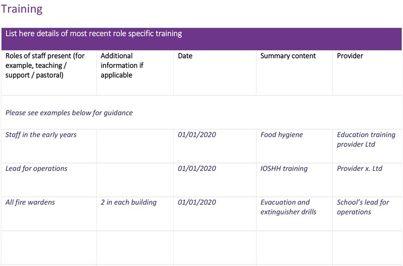 This part enables schools to keep and update records of training, health and safety checks, and provision of information that inspectors will request at the start of an inspection.