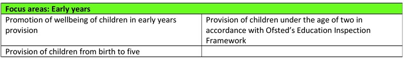43. Read the section of the Framework (pages 17 and 18) on early years and identify focus areas for evaluation. For example, but not limited to: